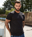 100% certified organic ringspun combed cotton. Pre-shrunk. Ribbed collar. Taped neck. Side seams. Twin needle stitching. Tear out label.