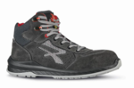High-cut safety shoes with quick-release fasteners with upper in soft perforated suede and mesh inserts.